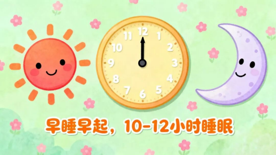 保障幼儿每日10-12小时的充足睡眠,早睡早起,维持稳定的生物节律。