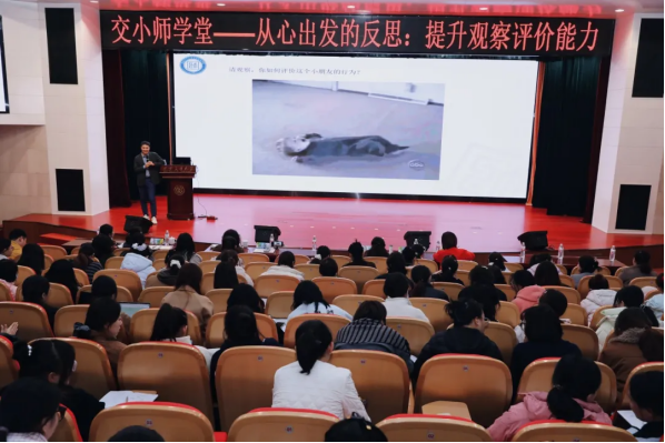 我们与园所教师一同前往西安交通大学主楼报告厅参加“交小师学堂”。刘昊教授以提升教师观察评价能力为主,围绕观察评价的六个心理过程展开详实又系统的阐述,案例鲜活、实操性强,对日常教学活动有极强的指导意义。