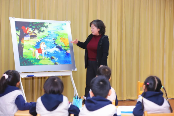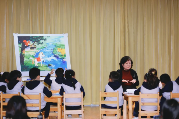 优质课展示环节,四位教师分别带来精彩课例展示。我园园长、正高级教师兀静执教的大班语言活动《小马过河》,幼儿通过绘画、记录、讨论等方式表达理解,展现语言教学的趣味性与实效性。