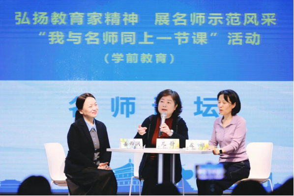 论坛中,四位执教教师先后分享了各自的活动设计理念、活动目标设定及实施思路,结合具体活动环节复盘了教学中的亮点与思考。随后,现场教师围绕“语言活动中的高效师幼互动策略”“数学活动中绘本资源的创新应用”等一线教学中的重点难点问题展开提问,执教教师与教研员们逐一回应、深入探讨,思维的碰撞让现场氛围愈发热烈。
