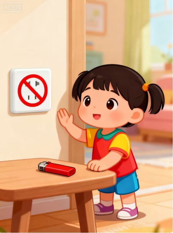 居家安全:教育孩子不玩火、不触摸电源插座,不攀爬阳台、窗户,杜绝一切安全隐患。