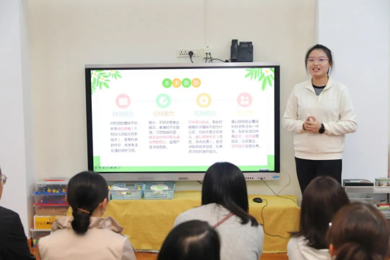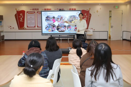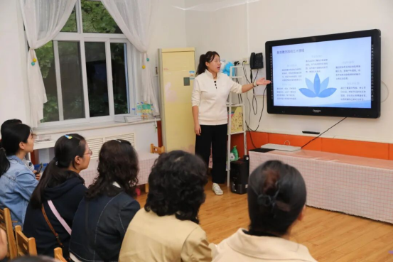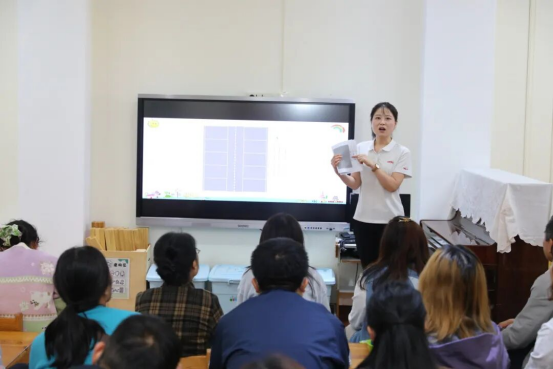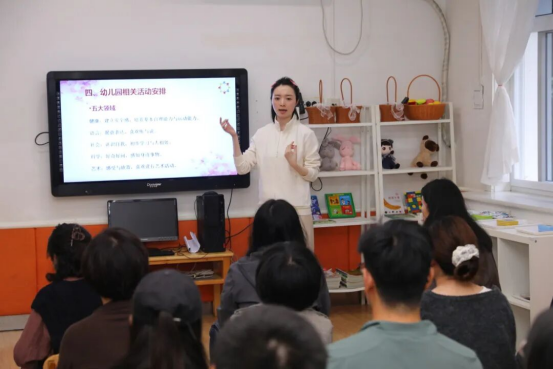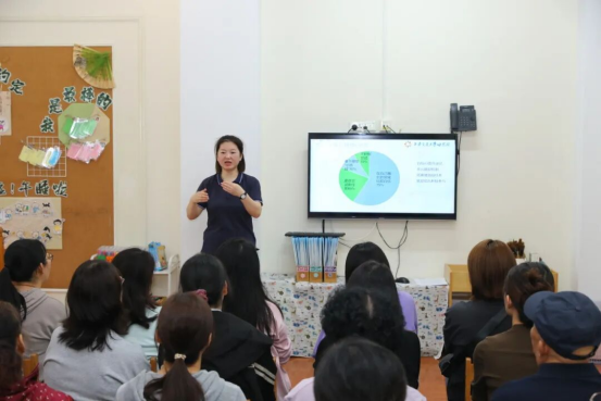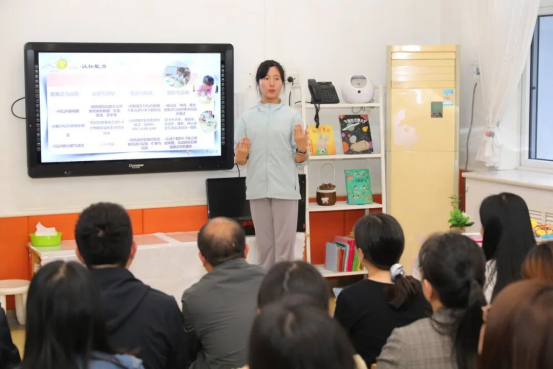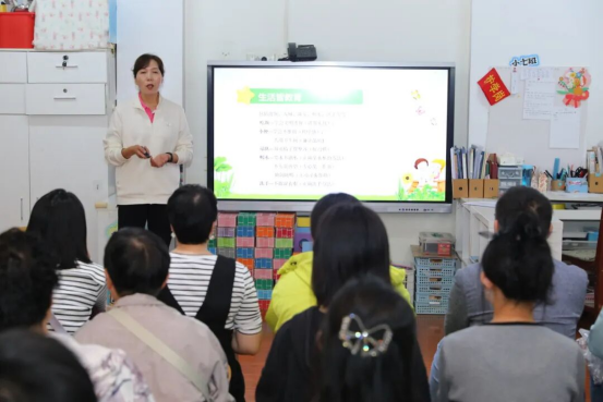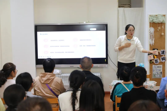 对于托班来说,想要真正实现“养教结合”,最关键的就是保证家园社多方的有效协作。老师详细介绍托班生活照料全流程,结合实践经验在护理常规、游戏探索、人际互动方面向家长提供了科学专业的照护策略。