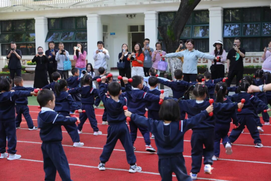活力满满的亲子游戏,趣味十足的儿歌表演、花样器械操展示开启了一场温馨的对话。