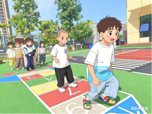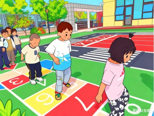 户外活动时,我和小伙伴们一起玩跳房子,踩着格子数着“一二三四”;爬上滑滑梯时张开小手,像小飞机一样 “嗖” 地滑下来;还能在操场上撒开脚丫子跑,风呼呼地擦过耳朵,把我们的笑声裹得软软的,飘得满操场都是,连远处的大树好像都在听我们笑呢!