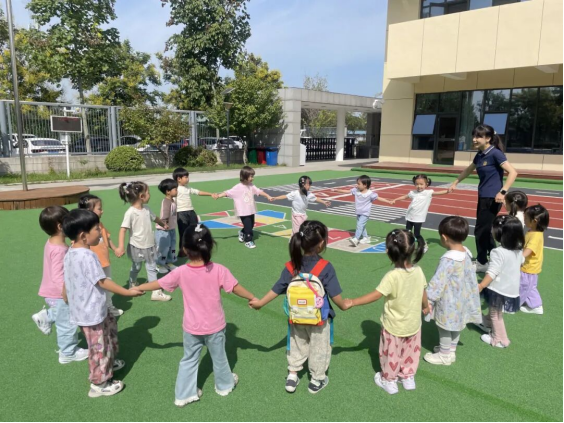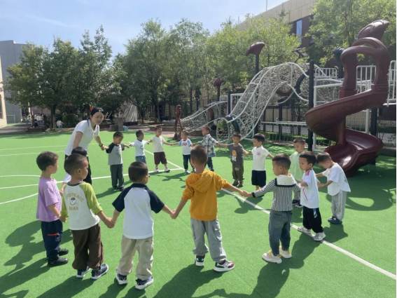 拉圆圈的时候,我笑着拉住小伙伴软软的手,跟着音乐转呀转,圆圈越转越热闹,手心也暖乎乎的,连风都跟着轻轻晃。