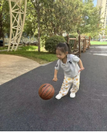 我学着老师的样子,扶住圆滚滚的皮球想拍拍它。可是皮球一点都不听话,一碰到地面就往旁边“乱跑”,我急得踮着脚去追。老师笑着在旁边鼓励我说 “别着急,慢慢来”,我跟着老师说的方法调整小手的力气,拍着拍着,皮球居然乖乖待在我手边了,越拍越稳!真的好开心呀!