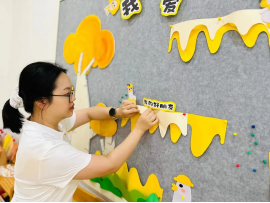 走廊和教室的墙也“活”了起来:老师们剪了秋天的叶、贴了可爱的小动物,还留了好多空白小格子,期待宝贝们来完成~