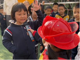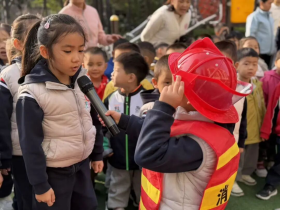 面对消防小问题,孩子们争先恐后抢答,红彤彤的消防帽衬得笑脸更甜。