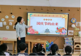 各班级组织幼儿开展了主题为“月满中秋,喜迎国庆”主题活动,借助图片和视频的方式了解“国庆节”的由来。