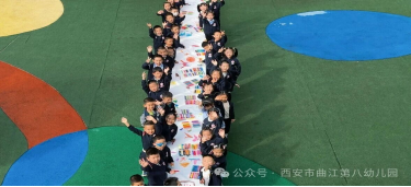 一支画笔,一颗童心,一幅百米长卷,献给最爱的祖国妈妈!大班小朋友用色彩描绘山河,用童心祝福祖国。