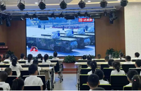 孩子们聚精会神地观看阅兵直播,被整齐划一的徒步方队、威武先进的装备方队以及翱翔天际的空中梯队所深深吸引,眼睛里满是崇拜的光芒。