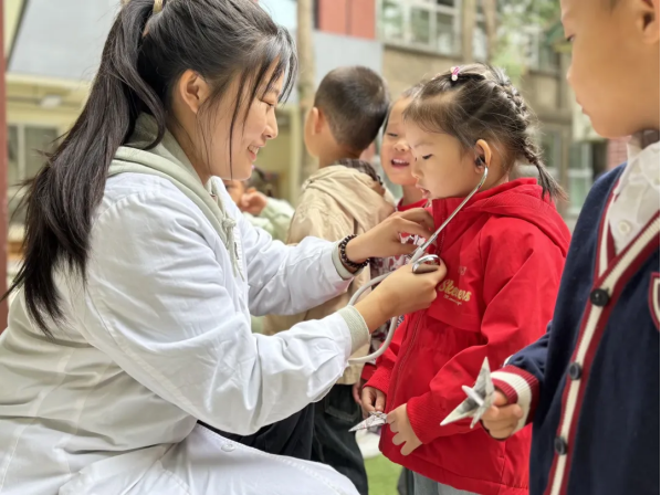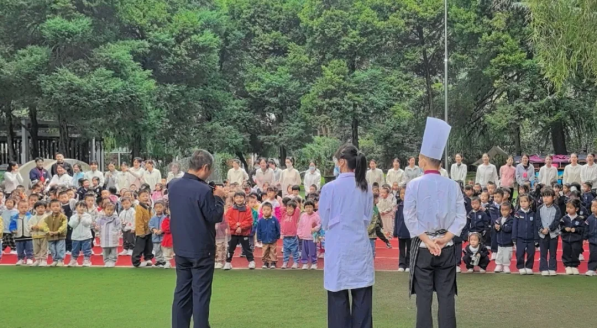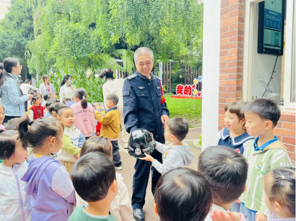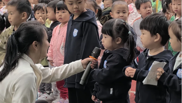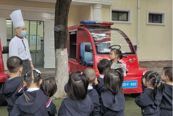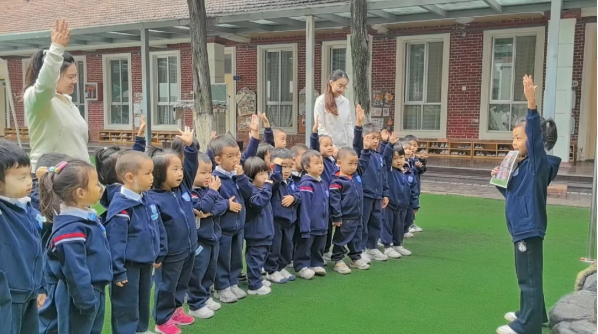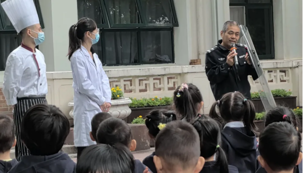 活动开始啦,我们一起唱起了《我爱我的幼儿园》!接着,厨师叔叔、医生阿姨和保安叔叔笑眯眯地走来,为我们讲解了“厨房里在做什么?”“保健室里有什么?”“保安叔叔的武器是什么?”原来,幼儿园有这么多人在悄悄守护着我们呢!