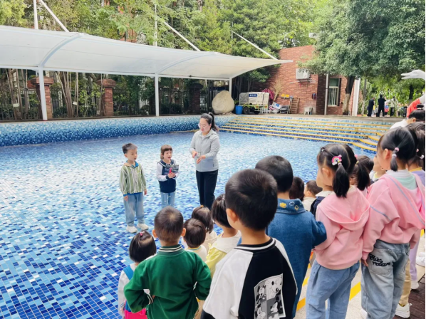 跟着老师和哥哥姐姐,我们走到了香喷喷的厨房,看到了厨师叔叔在做美味的饭菜;走到了门卫室,和保安叔叔学习了安全小知识;还去了游泳池边,想象夏天在这里玩水有多快乐……幼儿园的每一个角落,都藏着有趣的故事!