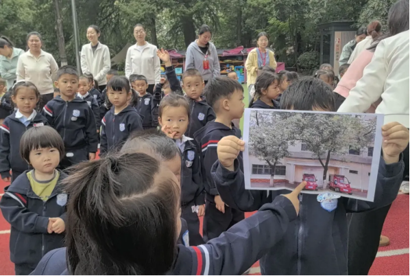 每个班都派小代表去摸“神秘盲袋”,这里面藏着两张照片——都是我们幼儿园里的地点!接下来,大班的哥哥姐姐当起了“小导游”,带着我们一起去找照片里的地方!