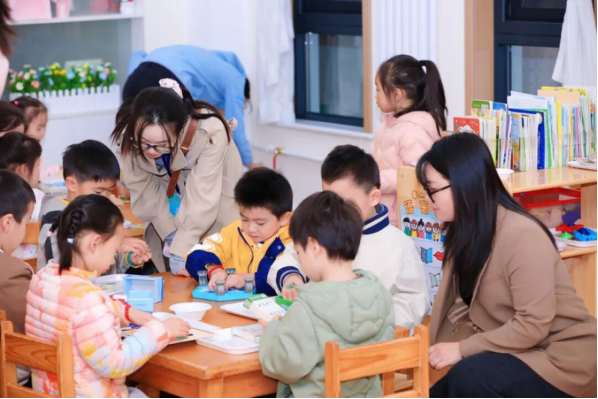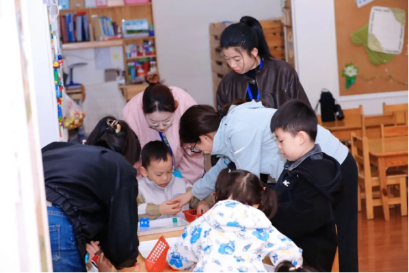 学员们分组走进不同班级,全程沉浸式观摩半日活动。从区域活动的材料投放与幼儿自主探索引导,到集体教学中师幼互动的设计技巧,再到户外游戏的安全保障与趣味创新,学员们边观察记录、边实时提问,近距离学习园所在保教细节上的巧思。