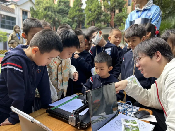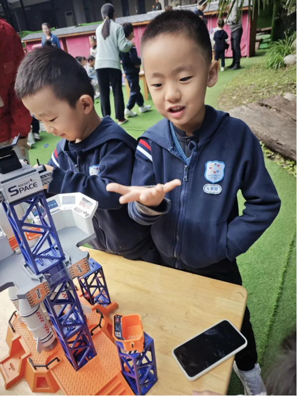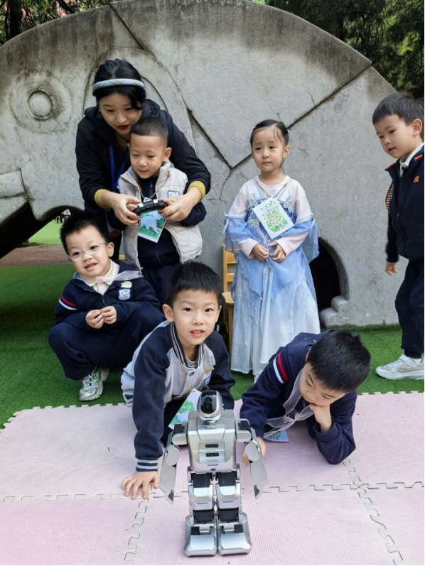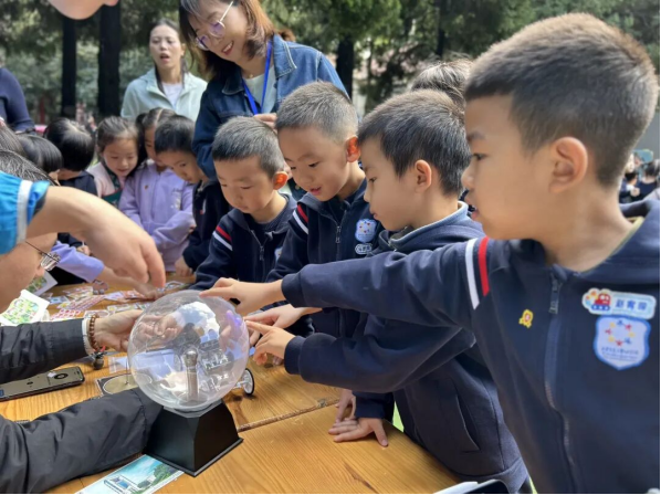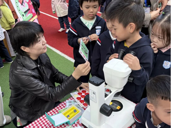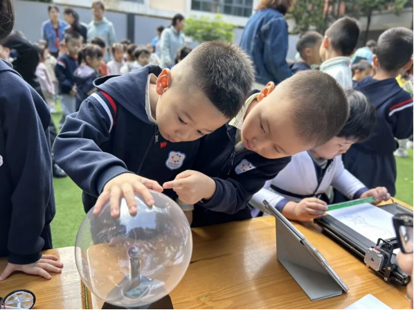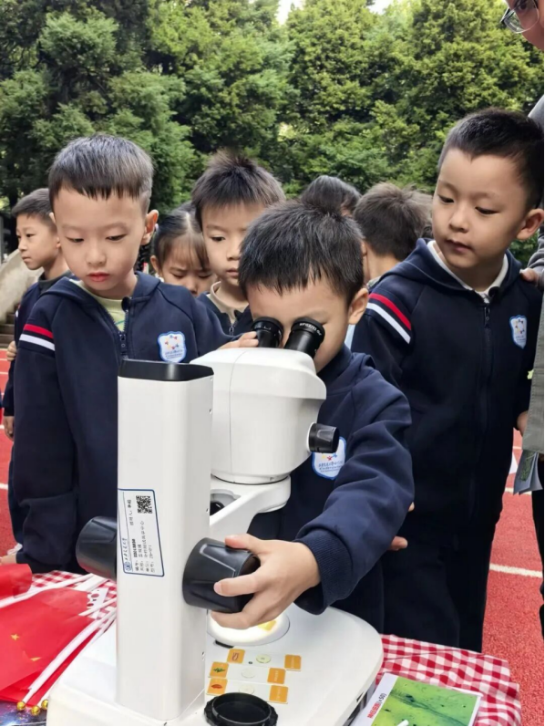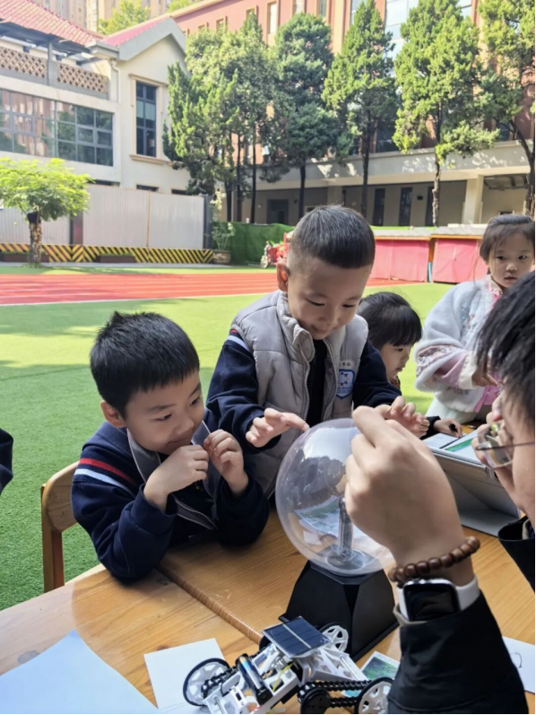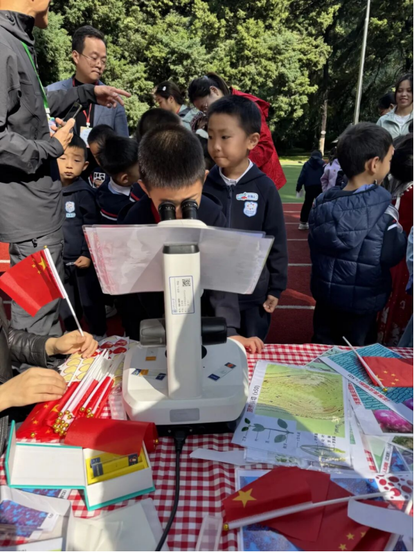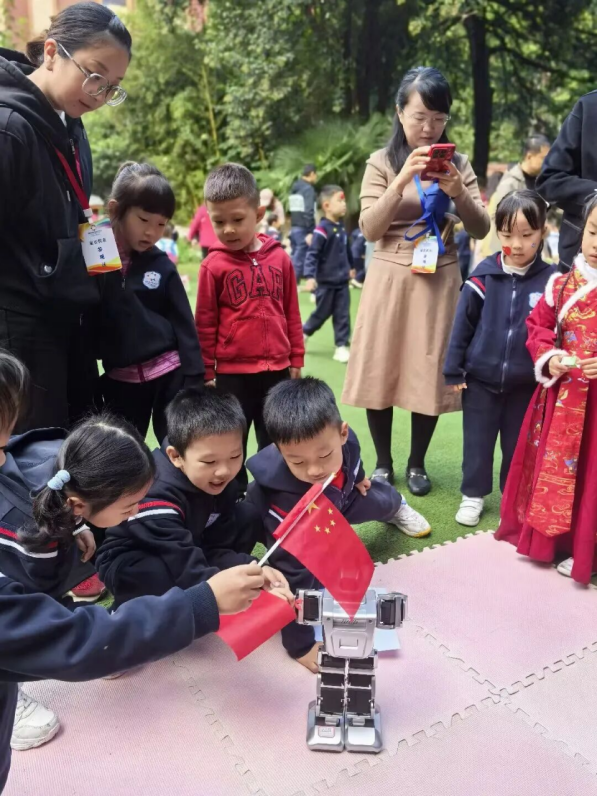 在科学研究实验区,小朋友们好奇地通过显微镜探索奇妙的细胞世界;机器人体验区里,欢声笑语不断,人与机器的智能互动点燃了无限想象。最后,小朋友们将绘有自己“中国梦”的彩色便利贴,郑重地贴在中国地图上,一颗颗爱国与理想的种子,在此刻深深扎根。